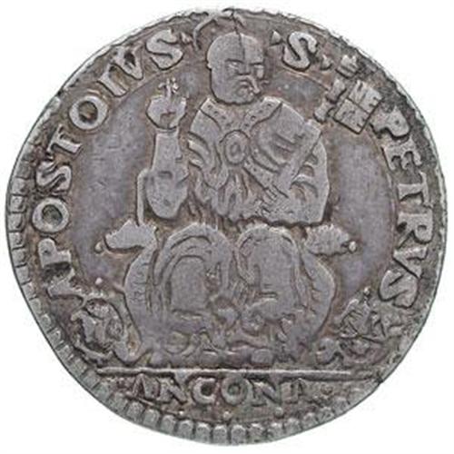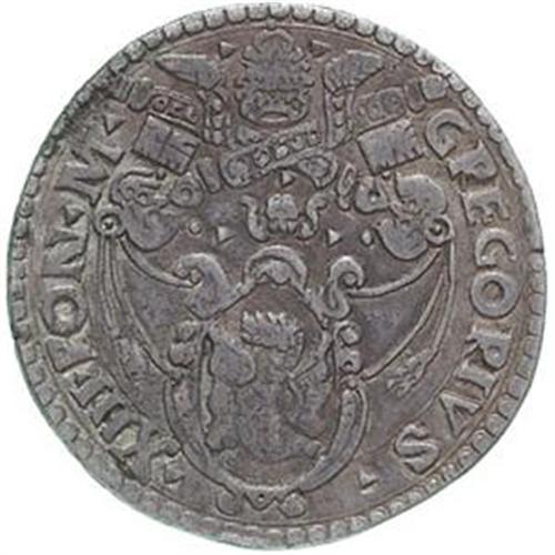 Monete e Medaglie di Zecche Italiane. Ancona. Gregorio XIII (1572-1585). Testone. M. 232 nei tipi. N.C. AG. Patina di monetiere. BB. GREGOPIUS e non GREGORIUS.