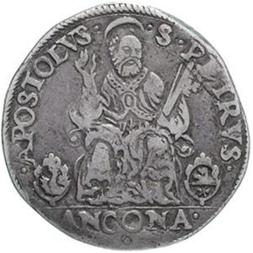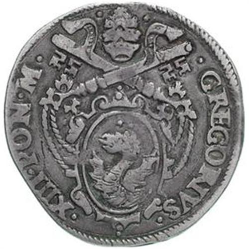 Monete e Medaglie di Zecche Italiane. Ancona. Gregorio XIII (1572-1585). Testone. M. 238 nei tipi. AG. BB.