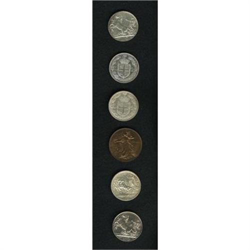 <B>Beautiful type coins:</B></I> 10 Centesimi 1911-R, Choice R&B Unc., 2 Lire 1883-R, sharp AU, 2 Lire 1897-R XF, 2 Lire 1917-R XF+, 10 Lire 1927-R Choice AU, another, nice BU.<BR><BR><b>Shipping:</b> Coins & Currency (<a target="_blank" href="http://www.heritageauctions.com/common/shipping.php">view shipping information</a>)