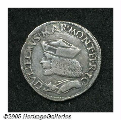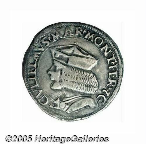 <B>Casale. Gugliemo II Testone (1494-1515), </B></I>Obverse: Renaissance bust left, Reverse: Quartered arms. Toned AVF, few light hairline scratches, edge flaw as made. Very scarce and popular type.