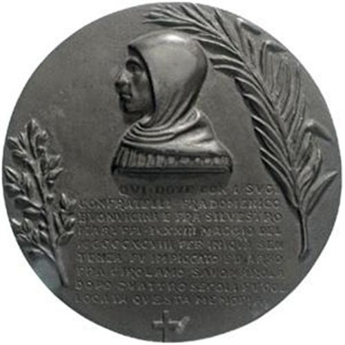 Monete e Medaglie di Zecche Italiane. Firenze. Fra Gerolamo Savonarola (+ 1498). Placca 1898 a 4 secoli dalla morte. 116.00mm. R. SN ramato. SPL.