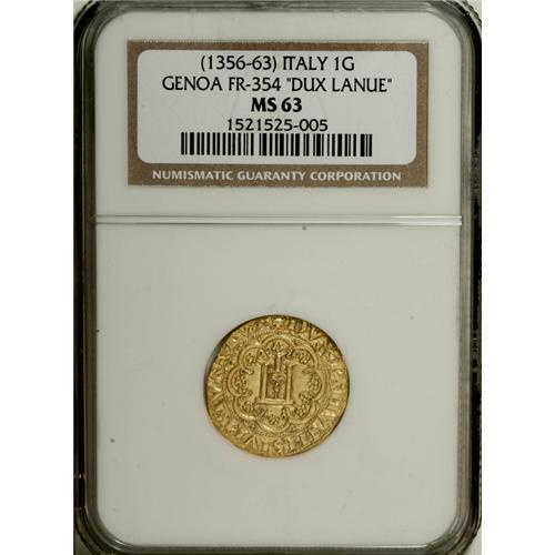 <B>Genoa. Simone Boccanegra gold 1 Genovino d'Oro ND (1339-1344 and 1356-1363),</B></I> Castle within tressure/Cross within tressure, F-354, MS63 NGC. Well struck with shimmering luster.<BR><BR><b>Shipping:</b> Coins & Currency (<a target="_blank" href="http://www.heritageauctions.com/common/shipping.php">view shipping information</a>)