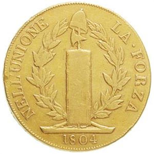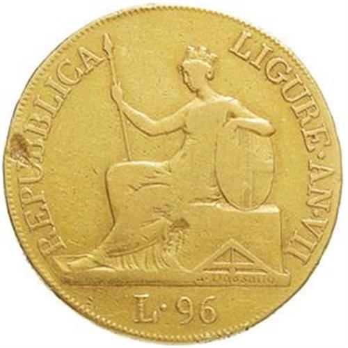 Monete e Medaglie di Zecche Italiane. Genova. Repubblica Ligure (1798-1805). 96 lire 1804. Pag.4. R. AU. MB.