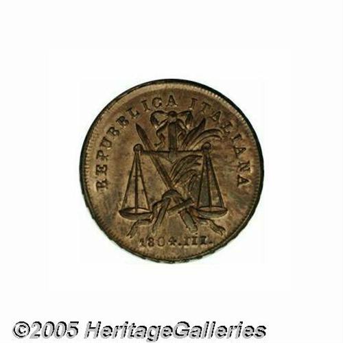 <B>Italian Republic. Pattern 1/2 Soldo/5 Denari 1804, </B></I>KM-Pn15, choice lustrous UNC and quite rare.