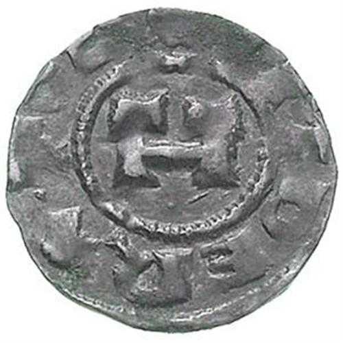 Monete e Medaglie di Zecche Italiane. Lucca. Patronato degli Imperatori della Germania e Re d'Italia (sec.X,XI,XII). Denaro. Massagli pag.176 n.7. NC. AG. SPL. Conservazione insolita per il tipo di moneta.
