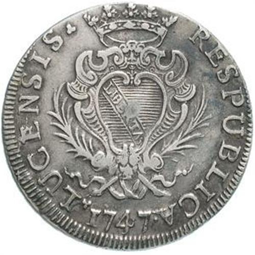 Monete e Medaglie di Zecche Italiane. Lucca. Repubblica (1369-1799). Scudo 1747 con San Martino. Dav.1373. AG. Bel BB.