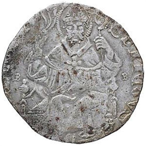 Monete e Medaglie di Zecche Italiane. Monza. Estore Visconti (1407-1413). Grosso con B-B ai lati di S. Ambrogio. CNI Tav. XXXVII, 12. R. AG. MB/BB.