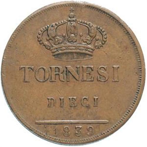 Monete e Medaglie di Zecche Italiane. Napoli. Ferdinando II (1830-1859). 10 tornesi 1839. P.R.188. AE. qSPL.