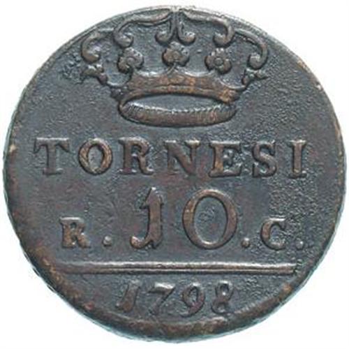 Monete e Medaglie di Zecche Italiane. Napoli. Ferdinando IV (1759-1816). 10 tornesi 1798. P.R. 95. R. AE. BB+.