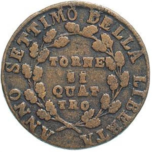 Monete e Medaglie di Zecche Italiane. Napoli. Repubblica Napoletana (1799). 4 tornesi. P.R.4. R. AE. Bel BB.