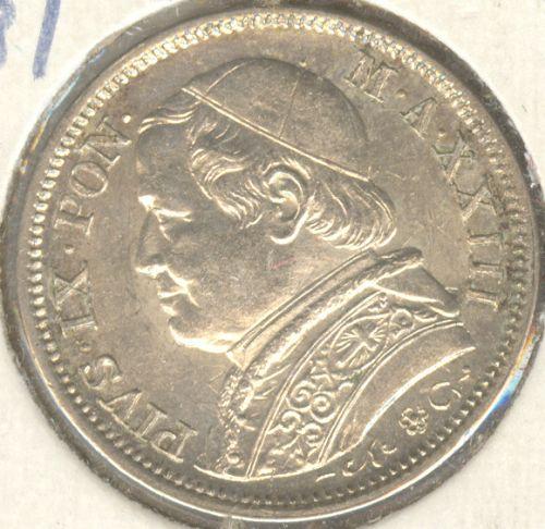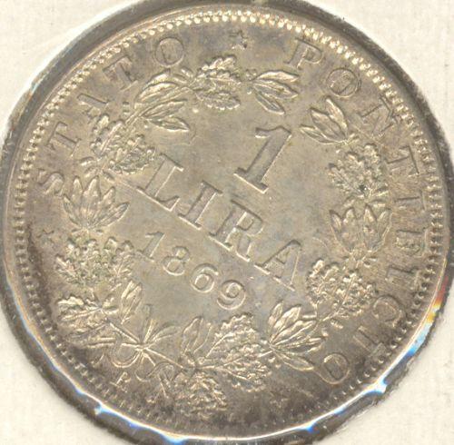 Italy Papal State 1 Lira 1869 UNC, XXIII, KM # 1387.