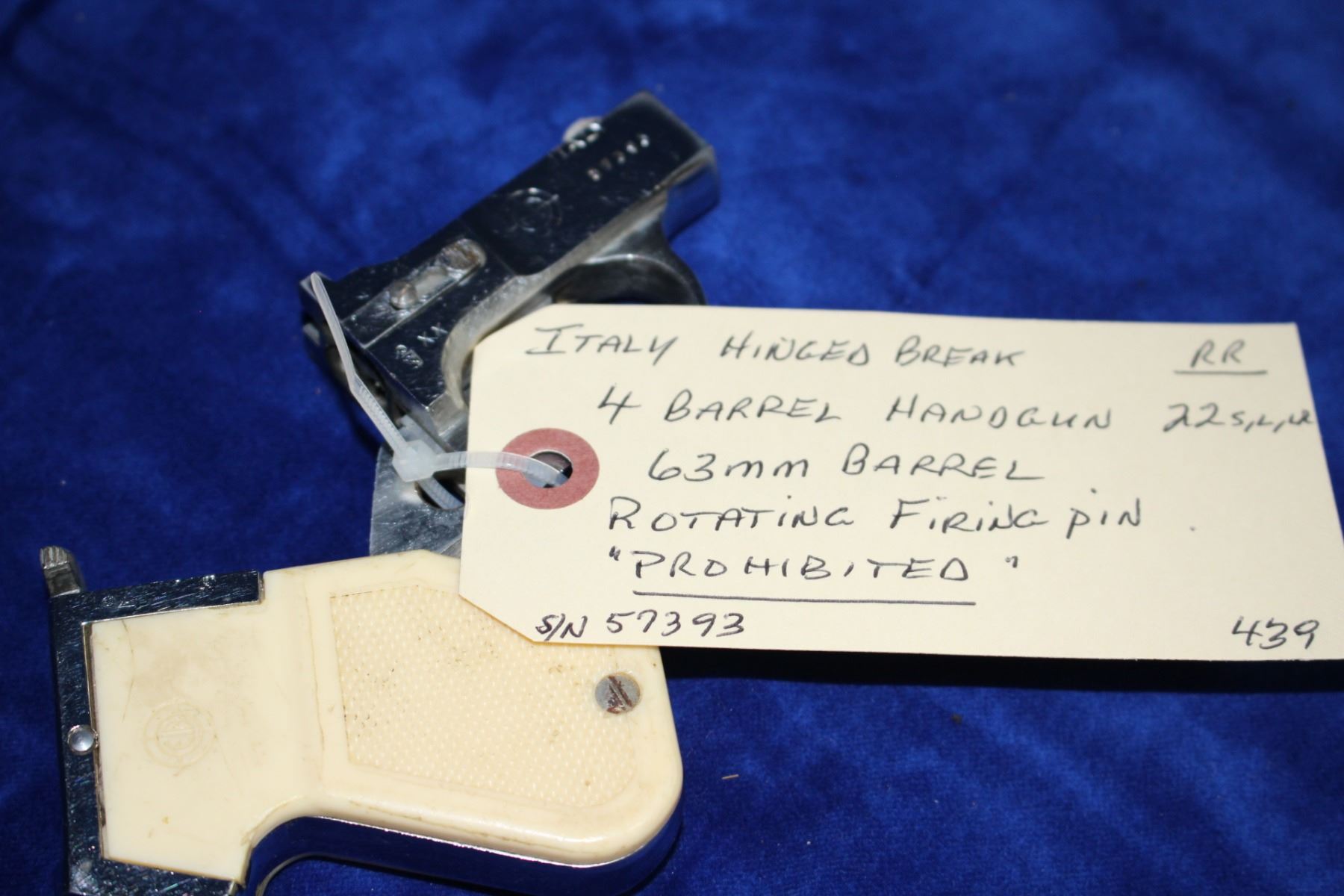 22 S.L.LR; 4 Barrel Handgun; 63mm Barrel; Hinged Break; S/N 57393