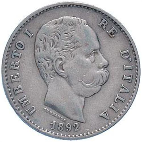 Casa Savoia - Regno di Sardegna - Regno di Italia. Regno di Italia. Umberto I (1878-1900). Lira 1892. Pag. 605. RR. AG. BB. Bella patina intensa al rovescio.