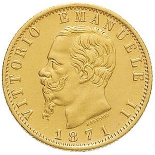 Casa Savoia - Regno di Sardegna - Regno di Italia. Regno di Italia. Vittorio Emanuele II (1861-1878). 20 lire 1871. Pag.466. RR. AU. qFDC.