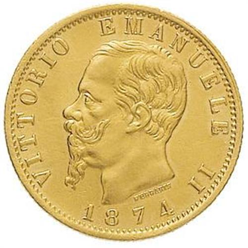 Casa Savoia - Regno di Sardegna - Regno di Italia. Regno di Italia. Vittorio Emanuele II (1861-1878). 20 lire 1874 R. Pag.471. R. AU. qFDC.