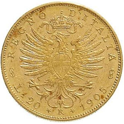 Casa Savoia - Regno di Sardegna - Regno di Italia. Regno di Italia. Vittorio Emanuele III (1900-1943). 20 lire 1905. Pag. 664. R. AU. Altissima qualit. FDC.