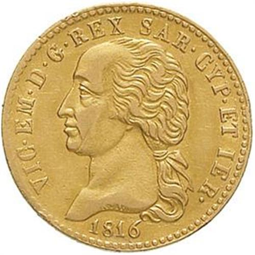 Casa Savoia - Regno di Sardegna - Regno di Italia. Regno di Sardegna. Vittorio Emanuele I (1802-1821). 20 lire 1816. Pag. 4. RR. AU. qSPL.