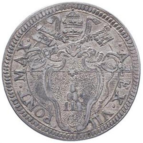 Monete e Medaglie di Zecche Italiane. Roma. Alessandro VII (1655-1667). Giulio. R/ Tavolo con monete. M. 14. R. AG. BB.