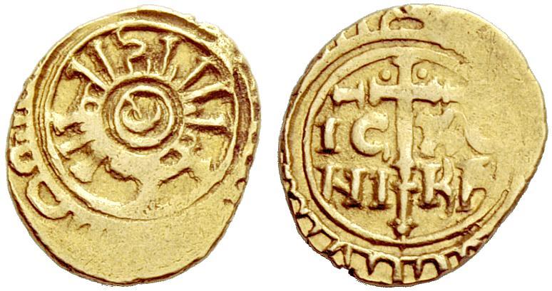 Medieval European Coinage. Italy. Sicilia. Enrico VI imperatore 1191-1197, re di Sicilia 1194-1997. Multiple of tarí, Palermo or Messina 1196, AV 1.58 g. Two circles of Arabic legend; the outer off flan, the inner : “Henry Caesar Augustus” around linear circle within which P. Rev. Outer legend off flan; in field, Latin cross between IC – XC / NI – KA. Spahr cf. 9 and 13. MEC 14, 481. Rare. Minor areas of weakness, otherwise good very fine. Ex NAC sale 20, 2000, 811.