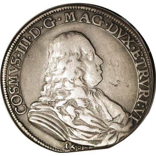 <B>Tuscany. Cosimo III Piastre 1680/1681, </B></I>Davenport 4210, toned VF, planchet clip, dated 1680 on the obverse and 1681 on the reverse.<BR><BR><b>Shipping:</b> Coins & Currency (<a target="_blank" href="http://www.heritageauctions.com/common/shipping.php">view shipping information</a>)