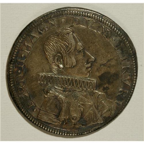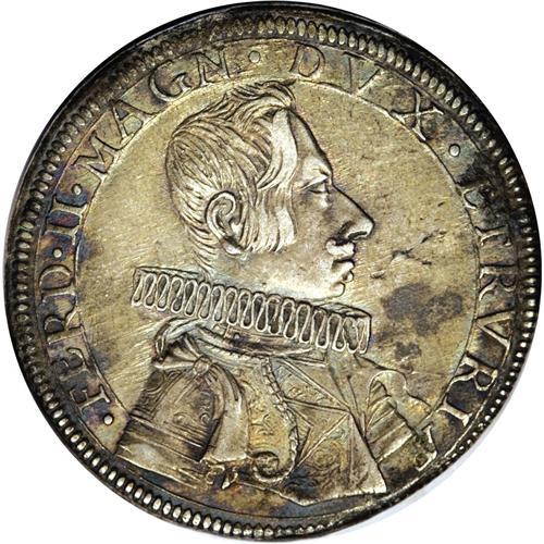 <B>Tuscany. Ferdinand II Piastre 1635, </B></I>Davenport 4202, toned VF-XF, bold design features, minor patination on the obverse. Bust/St. John with date below.<BR><BR><b>Shipping:</b> Coins & Currency (<a target="_blank" href="http://www.heritageauctions.com/common/shipping.php">view shipping information</a>)