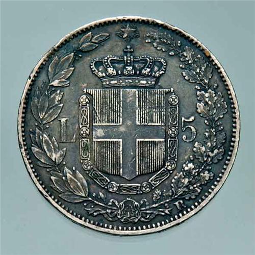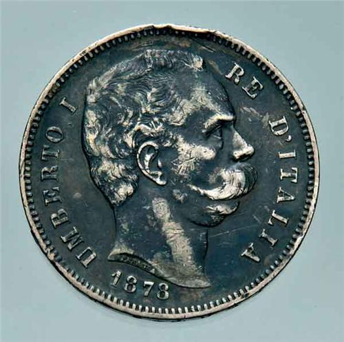 Italy - Umberto I - 5 L. 1878 - Ag - 5 Lire 1878 Zecca: Roma - Diritto: effigie del Re a destra - Rovescio: stemma di Casa Savoia coronato e circondato dal Collare dell'Annunziata entro due rami di alloro e di quercia intrecciati alla base - Colpo sul bordo del diritto e vari altri colpetti diffusi - Patina scura - Da esaminare