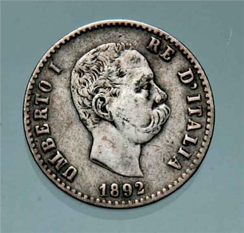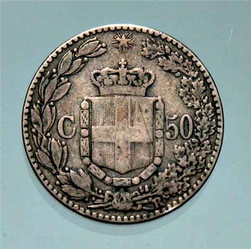 Italy - Umberto I - 50 c. 1892 - Ag - 50 Centesimi 1892 Zecca: Roma - Diritto: effigie del Re a destra - Rovescio: stemma di Casa Savoia coronato e circondato dal Collare dell'Annunziata entro due rami di alloro e di quercia intrecciati alla base -