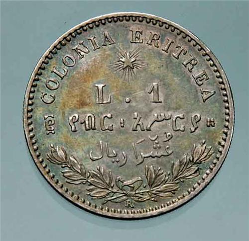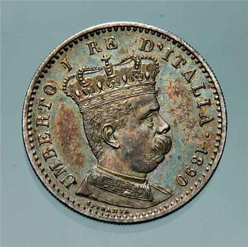 Italy - Umberto I - Eritrea - 1 L. 1890 - Ag - Colonia Eritrea - 1 Lira 1890 Zecca: Roma - Diritto: effigie coronata del Re a destra - Rovescio: valore e leggenda trilingue fra stella e rami di alloro - Splendida patina di medagliere e fondi lucenti
