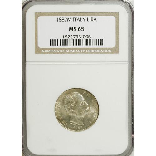 <B>Umberto I Lira 1887M, </B></I>KM24.2, MS65 NGC, a choice lustrous example.<BR><BR><b>Shipping:</b> Coins & Currency (<a target="_blank" href="http://www.heritageauctions.com/common/shipping.php">view shipping information</a>)