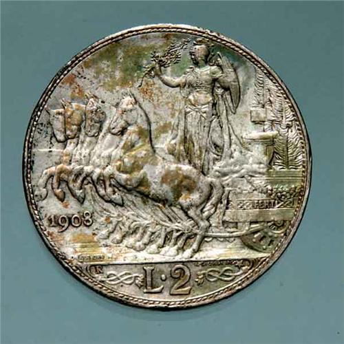 Italy - V.E. III - 2 L. 1908 - Ag - 2 Lire Quadriga Veloce 1908 Zecca: Roma - Diritto: effigie del Re a destra - Rovescio: allegoria dell'Italia ritta su quadriga veloce a sinistra -