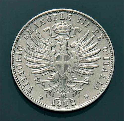 Italy - V.E. III - 25 c. 1902 - Ni - 25 Centesimi 1902 Zecca: Roma - Diritto: aquila coronata ad ali spiegate con stemma sabaudo in petto - Rovescio: valore entro due rami di alloro intrecciati alla base -