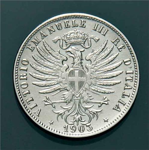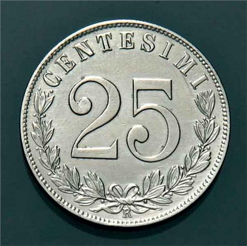 Italy - V.E. III - 25 c. 1903 - Ni - 25 Centesimi 1903 Zecca: Roma - Diritto: aquila coronata ad ali spiegate con stemma sabaudo in petto - Rovescio: valore entro due rami di alloro intrecciati alla base -