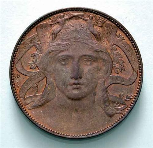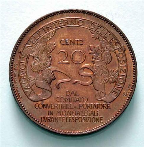 Italy - V.E. III - Token Coin - 20 c. - Cu - Gettone monetale da 20 Centesimi "Esposizione Internazionale di Milano" 1906 - Johnson Zecca: - Diritto: effigie dellla dea Minerva di fronte - Rovescio: valore entro valute e festoni floreali - Patina e fondi lucenti
