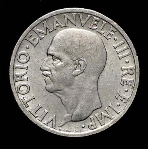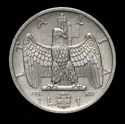 Vittorio Emanuele III (1900-1946) - 1 Lira Impero 1936 Zecca: Roma - Diritto: effigie del Re a sinistra - Rovescio: aquila di fronte ritta ad ali aperte con fascio littorio e scure retrostante -