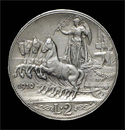Vittorio Emanuele III (1900-1946) - 2 Lire Quadriga Veloce 1910 Zecca: Roma - Diritto: effigie del Re a destra - Rovescio: allegoria dell'Italia ritta su quadriga veloce a sinistra -