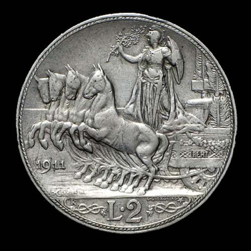 Vittorio Emanuele III (1900-1946) - 2 Lire Quadriga Veloce 1911 Zecca: Roma - Diritto: effigie del Re a destra - Rovescio: allegoria dell'Italia ritta su quadriga veloce a sinistra -