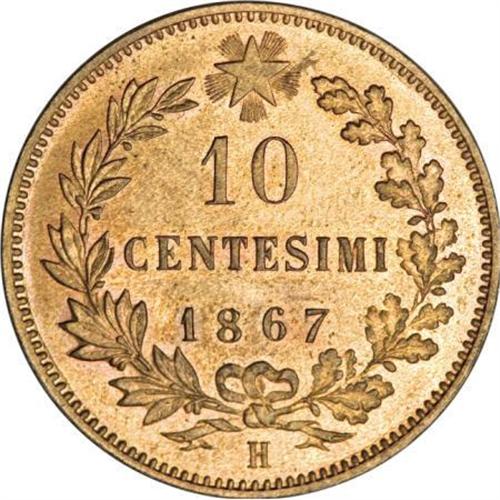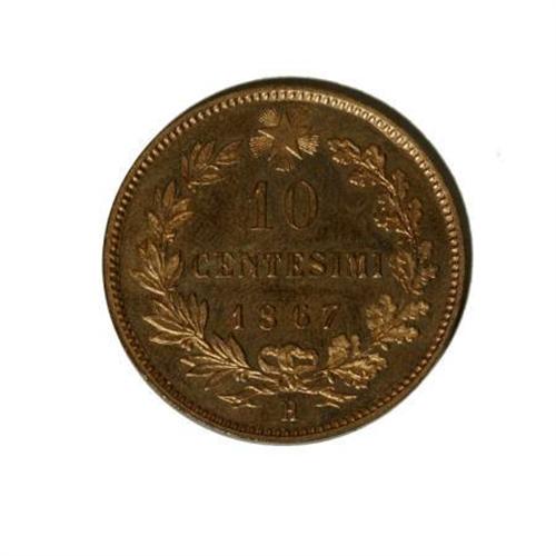<B>Vittorio Emanuele II bronze 10 Centesimi 1867-H,</B></I> KM-11.3, Choice reddish specimen or Proof, about as fine as anyone could wish for!<BR><BR><b>Shipping:</b> Coins & Currency (<a target="_blank" href="http://www.heritageauctions.com/common/shipping.php">view shipping information</a>)