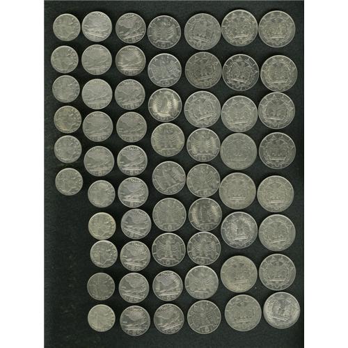 <B>World War II Nickel Date Collection 1939-1942, </B></I>fifty coins struck in the name of Vittorio Emanuele III but with Italy under the control of Mussolini. Included are 20 Centesimi (11), 50 Centesimi (17), Lira (13) and 2 Lire (19), KM75-78, various varieties including some magnetic and some not. Grades are mostly XF to UNC and we estimate the total retail value at $380. Ex: Dr. Eugenio Bombrini Collection. <B>Sold as is, no return lot.</B></I><BR><BR><b>Shipping:</b> Coins & Currency (<a target="_blank" href="http://www.heritageauctions.com/common/shipping.php">view shipping information</a>)