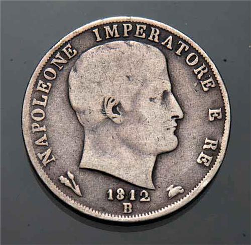 Antichi Stati Italiani - Napoleone I Re d'Italia (1805-1814) - Insieme di quattro monete: 2 Lire 1812 Bologna, Lira 1809 Milano, Lira 1812 Milano e 5 Soldi 1812 Milano - Metallo: Ag - Di qualità mediamente buona - Da esaminare