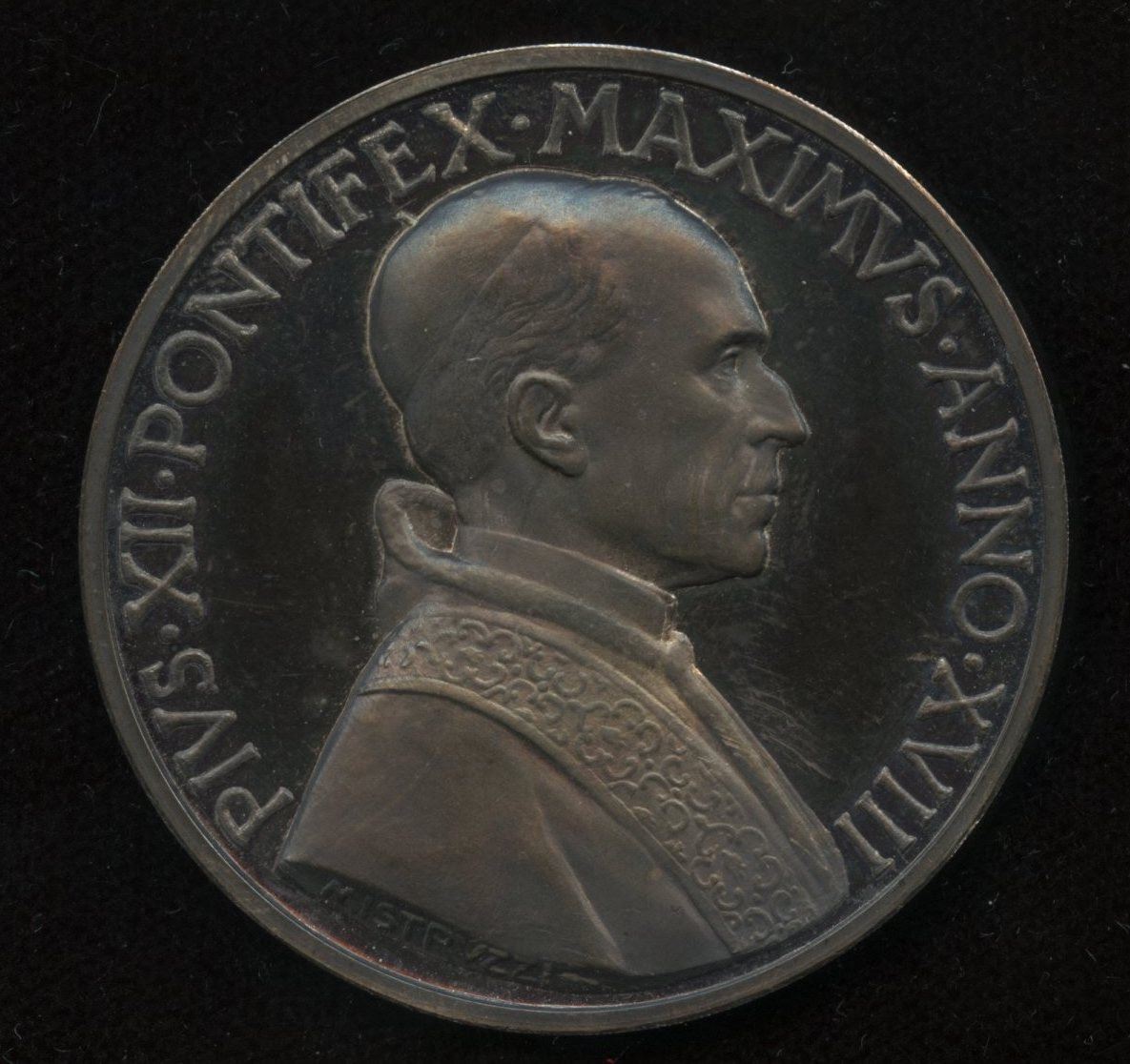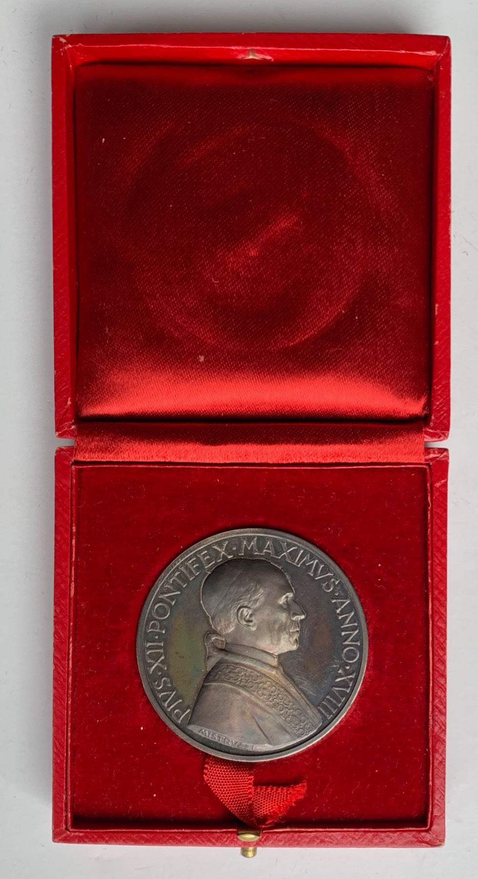 Pope Pius XII, silver in case of issue, one in a series engraved by Mistruzzi, 1939-1958, 35.3 gms.