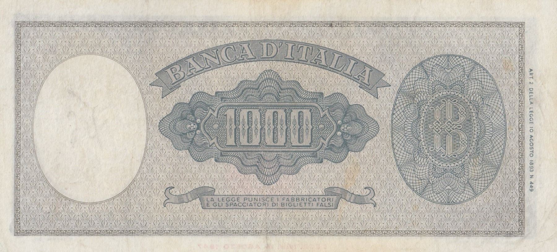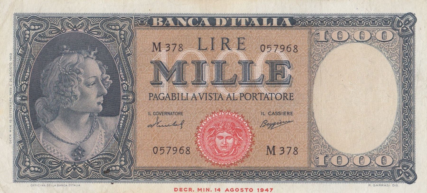 Itay, 1.000 Lire, 1947, AUNC, p88br/serial number: M378 057968