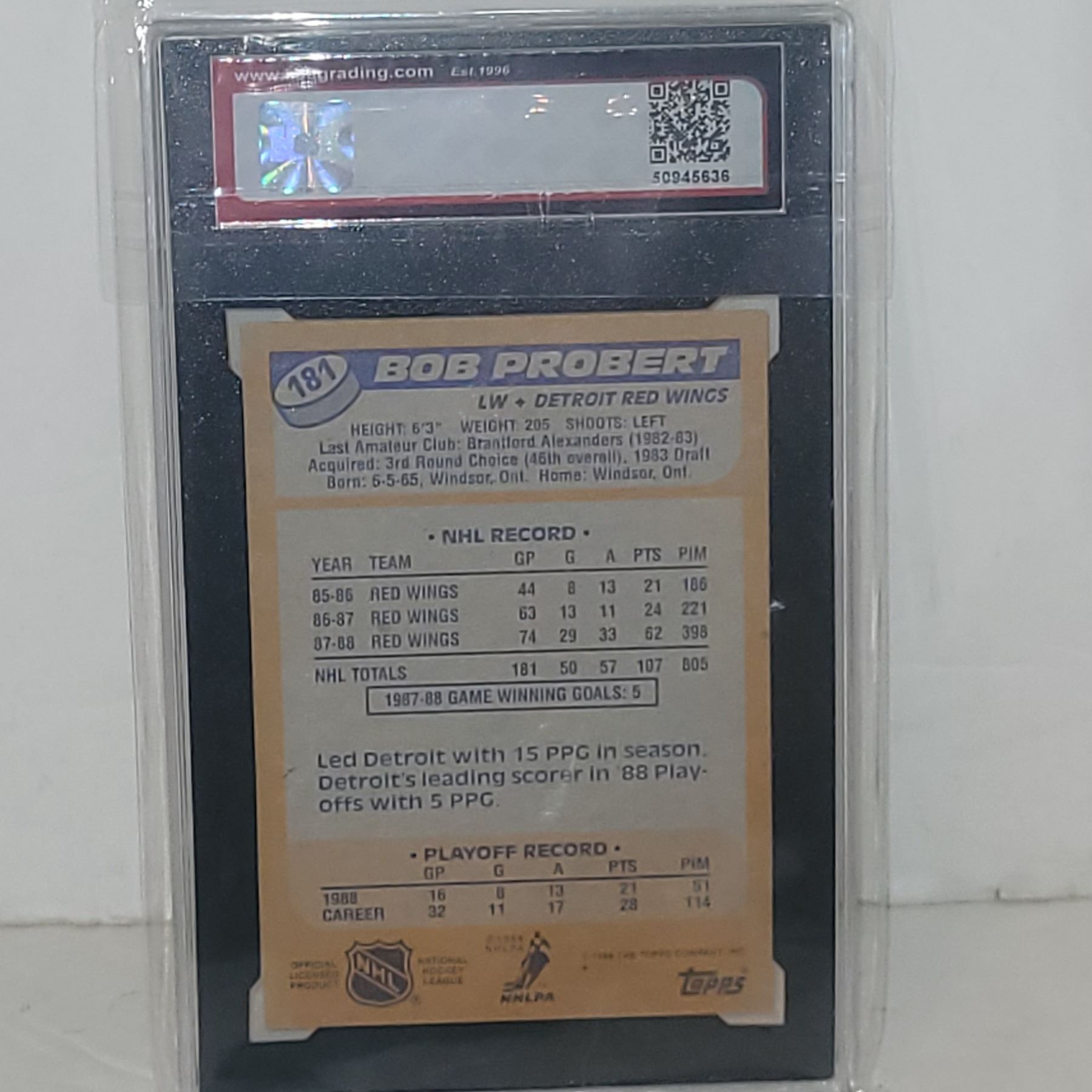 1988-89 Topps #181 Bob Probert Rookie Card - Graded 6 ENM KSA