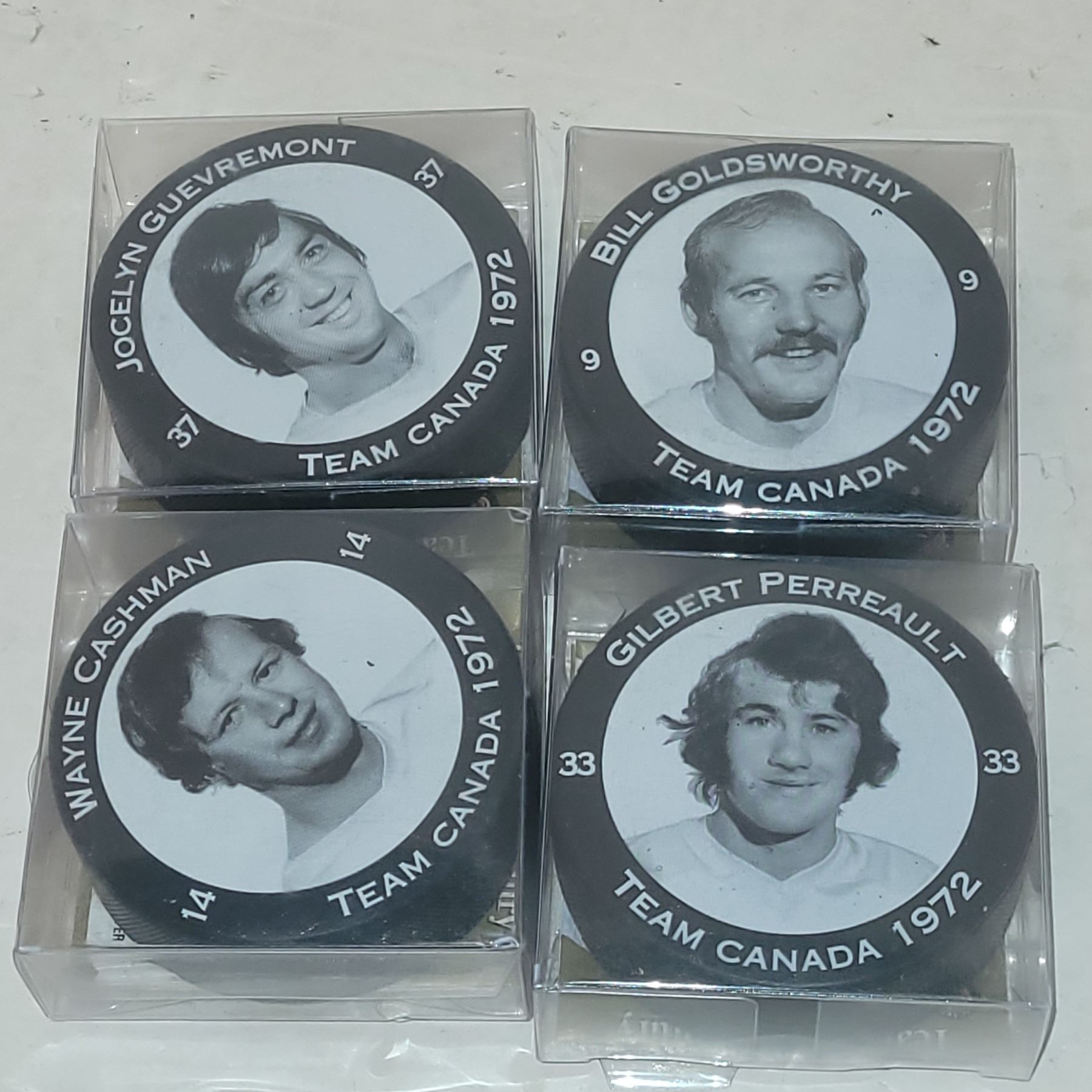 Lot of 4 Team Canada 1972 Summit Series Hockey Pucks New