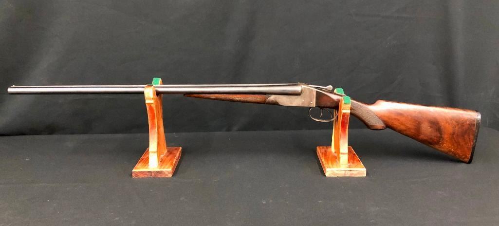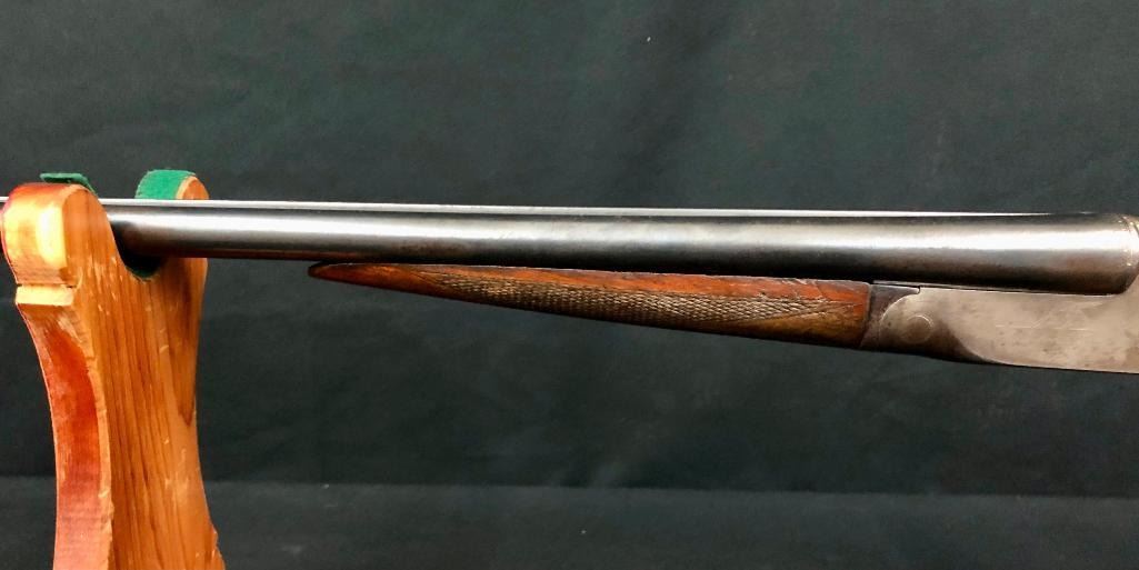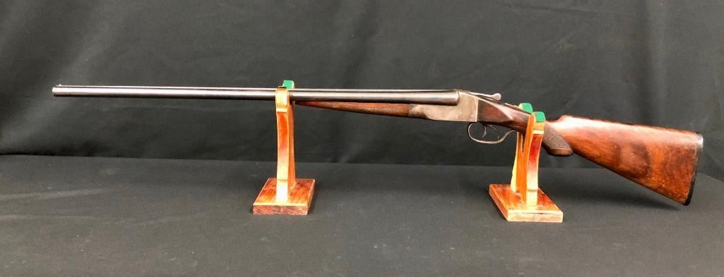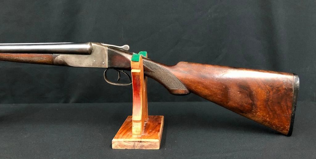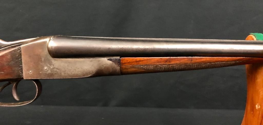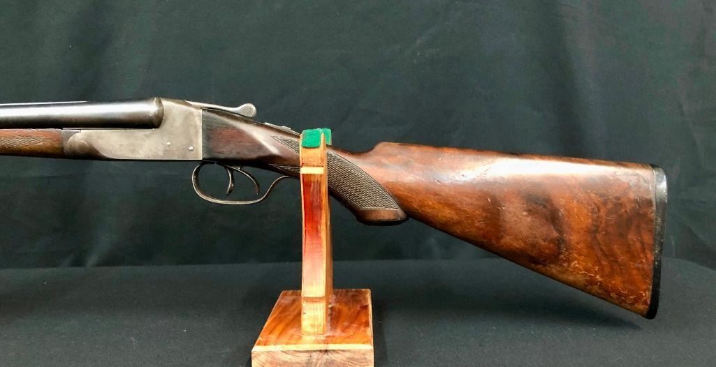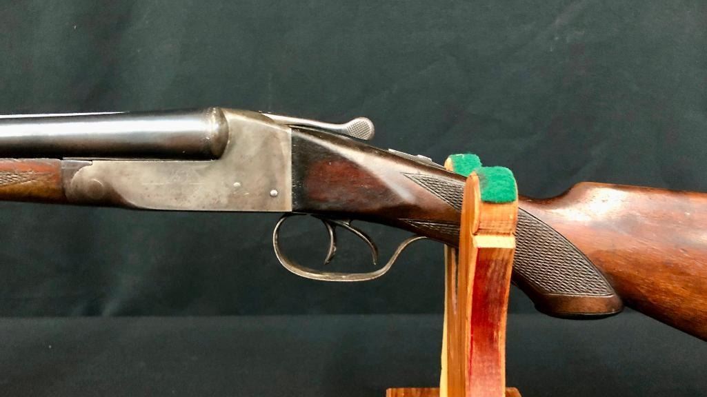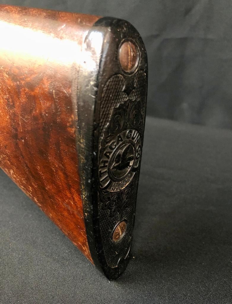 Presented for sale in this lot is a great old Ithaca 20 gauge double barrel side by side shotgun. It is in good condition for its age and is showing normal signs of wear from age and use. The finish is pretty good and the barrels have blueing still on them. The bore is bright and it has a walnut stock and forearm with checkering. It is fully functional and would make a great shooter. MAKER: Ithaca. Serial No. 224369 APPROX AGE: Early 1900s. SIZE: Barrel length is 26 inches long. 20 ga. CONDITION: Pretty good for its age, normal wear expected. Please look closely at the pictures as they are an important part of our description and are hereby incorporated into the description, specifically with regards to condition. SHIPPING: There will be a $25 handling / packaging fee for shipping this lot. The actual cost of postage will be added on top of that. BUY IT NOW: If you would like to buy this item now, without waiting for the auction day to bid on it, we do offer this option (which is available up to 48 hours before the actual auction starts). The “Buy it Now” price is the high estimate of this lot (plus applicable fees and the Buyer's premium is discounted to 10% when using the Buy it Now option). If you would like to exercise this option, you must contact us by email (or phone as long as you talk to someone live). Reference this lot number and your intention to "Buy it Now." *****This firearm requires an FFL Transfer*****