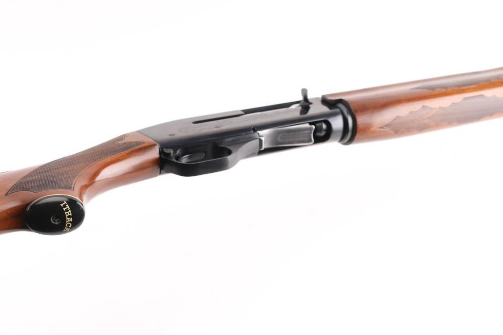 Semi-automatic shotgun chambered in 12 Gauge for 3" shells circa 1973. 30" serrated vent rib barrel with red fiber optic front sight, checkered forearm and semi-pistol grip stock, black pistol grip cap and serrated recoil pad, LOP 14", retains 98% of polished blue finish with 2" scratch on right side of receiver, wood is excellent. Bore and action are excellent. Marked "Featherlight" on barrel. Condition is NRA Excellent. C&R Firearm.