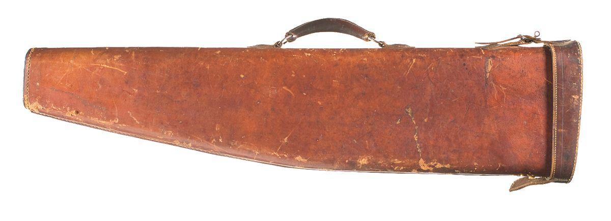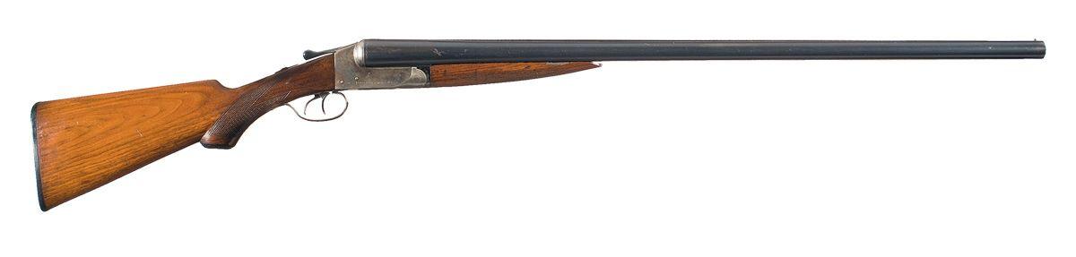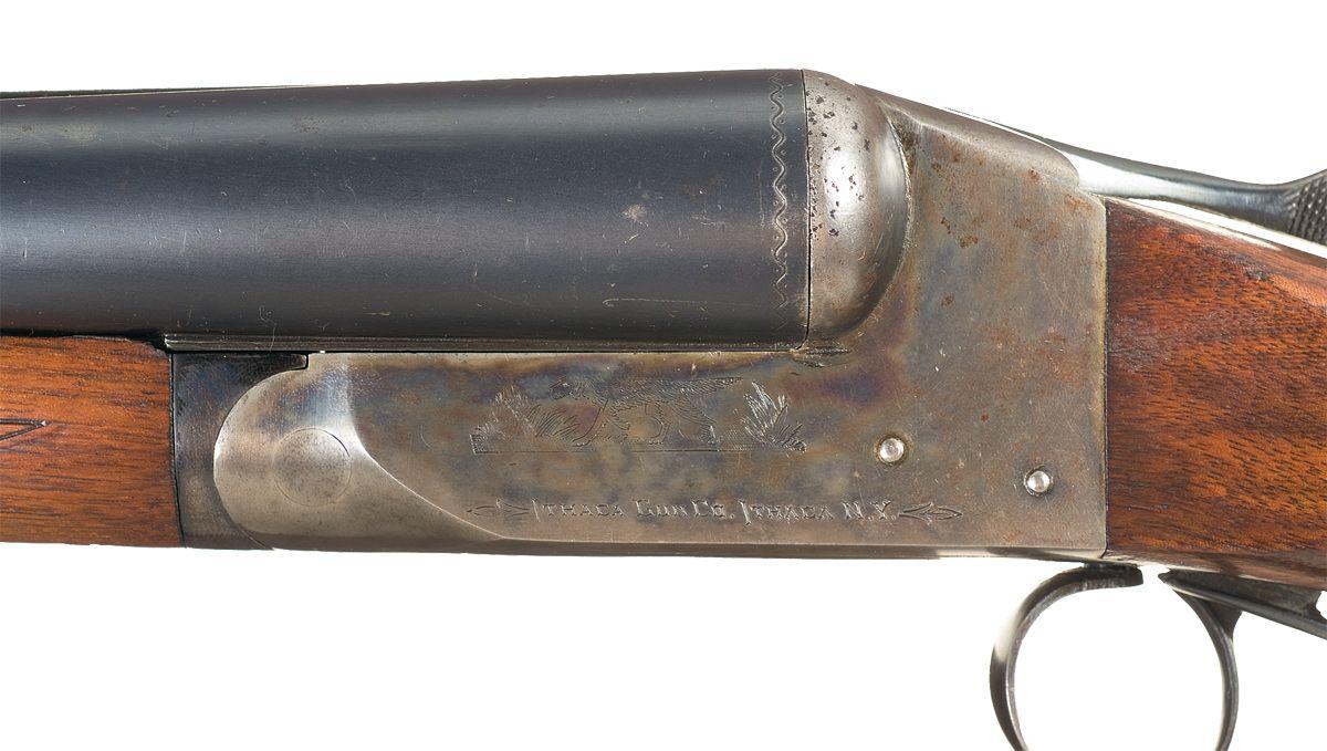 Made 1908-1926, in the Flues range. Single brass bead sight, double triggers, extractor, 3 inch chambers and tang safety. Ithaca marked frame with engraved dogs. Checkered pistol grip stock with hard rubber grip cap and factory buttplate. With case.