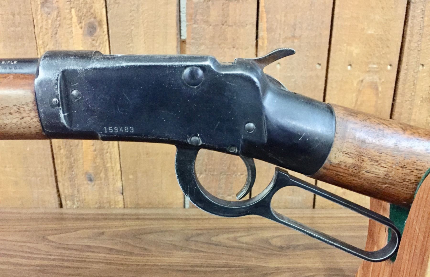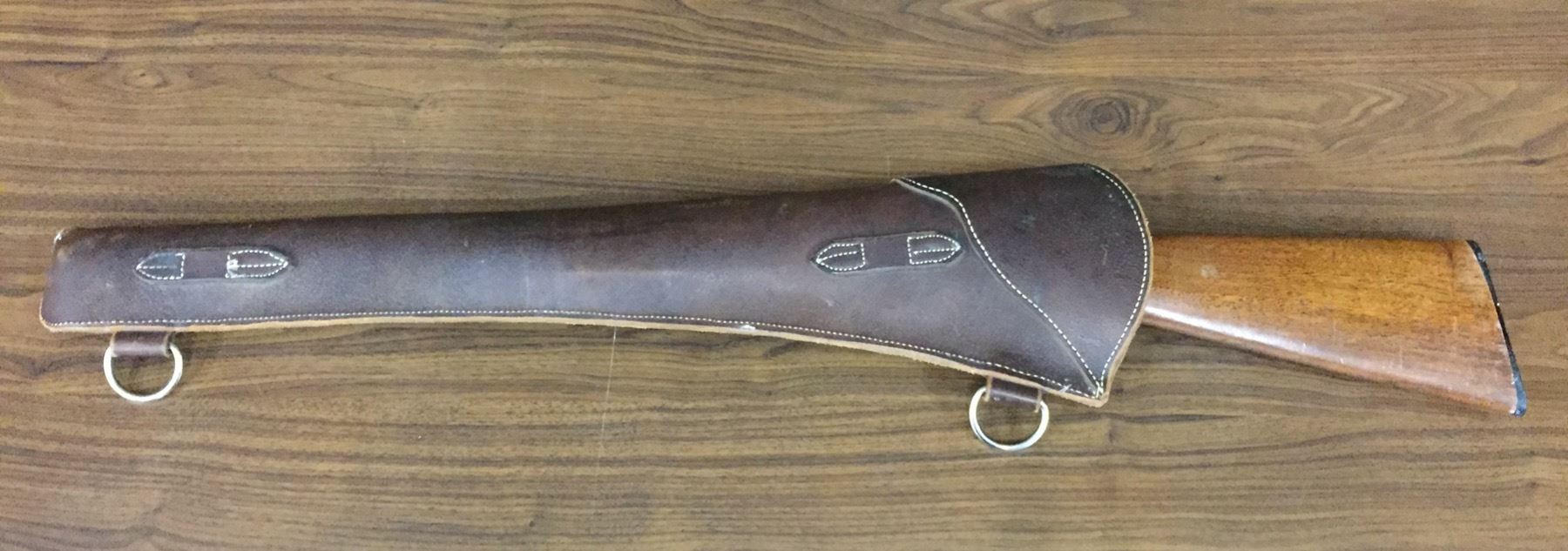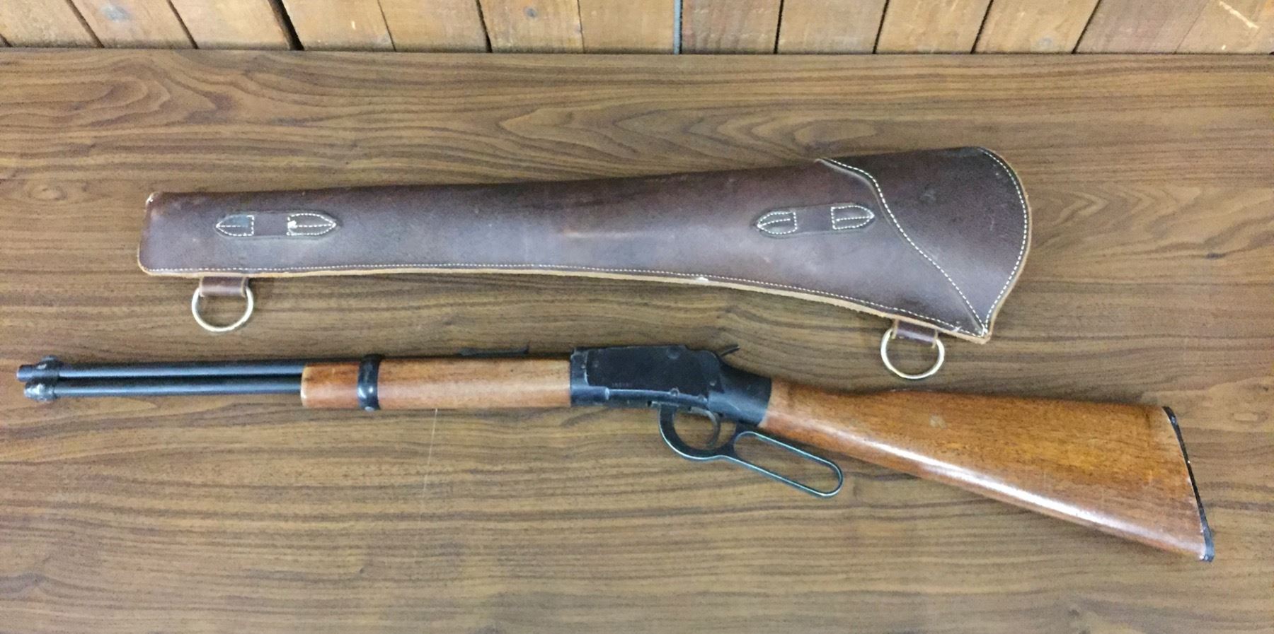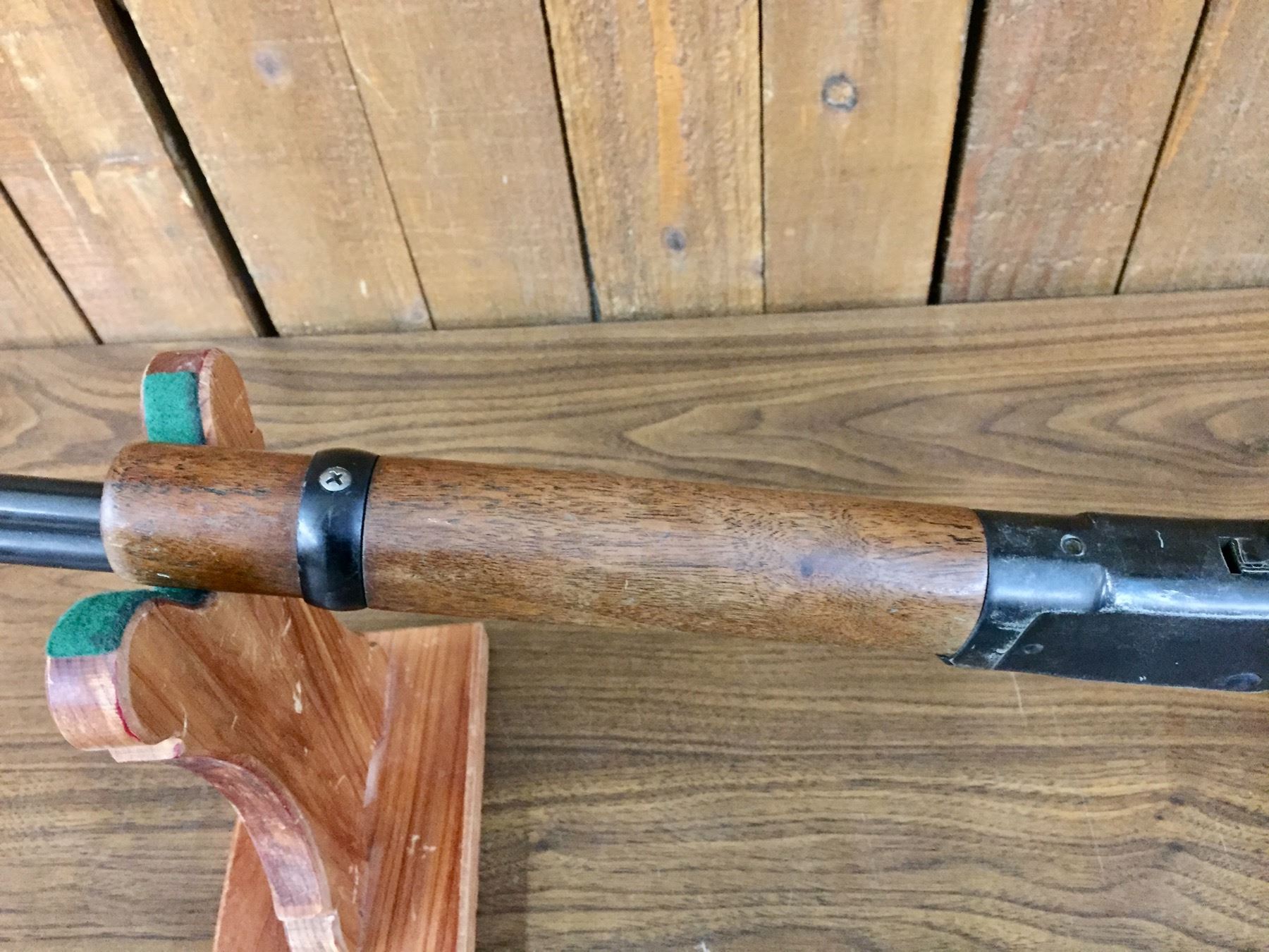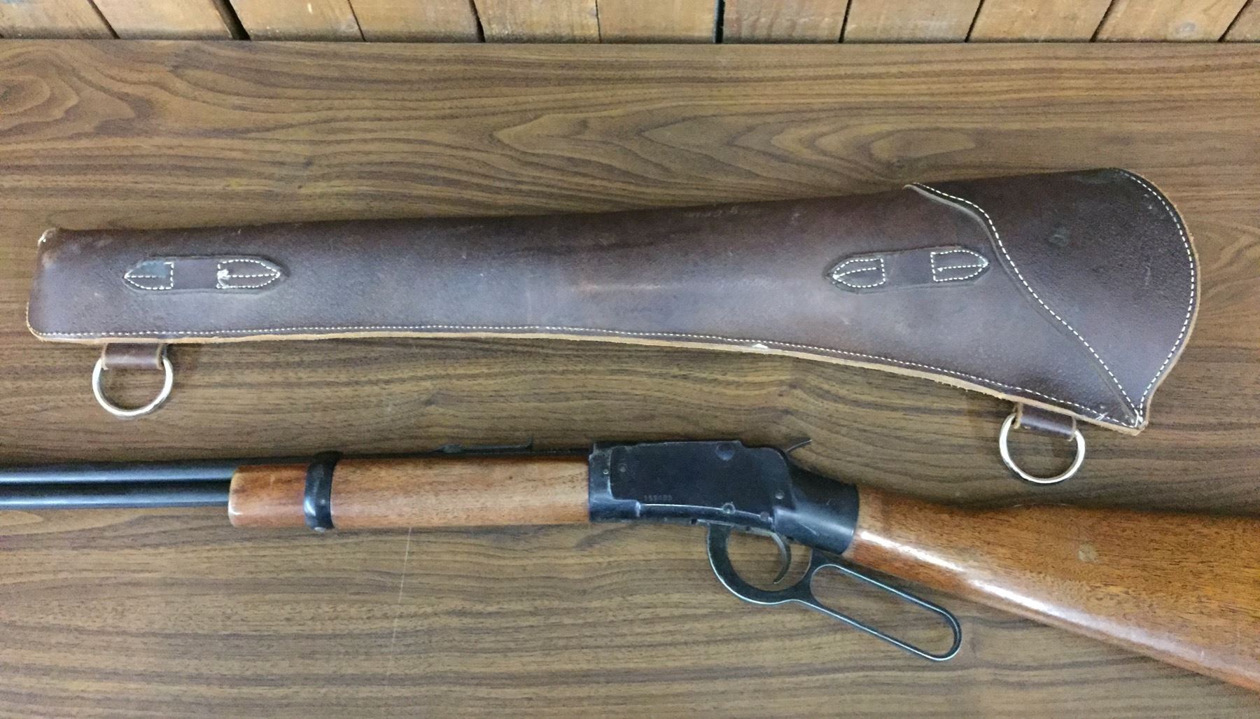 Description: Presented for sale in this lot is a nice little single shot, lever action .22 caliber rifle with a leather scabbard. It is a model 49 which was produced from 1961 - 1979. Maker: Ithaca Gun Co. Approx. Age: Modern. Serial No. 159483. Size: 18†barrel with an overall length of 35†long. Condition: Pretty good for its age, some wear expected. Please look closely at the pictures - they are an important part of our description. Shipping: There will be a $15 handling / packaging fee for shipping this lot. The actual cost of postage will be added on top of that. *****This firearm REQUIRES an FFL Transfer*****