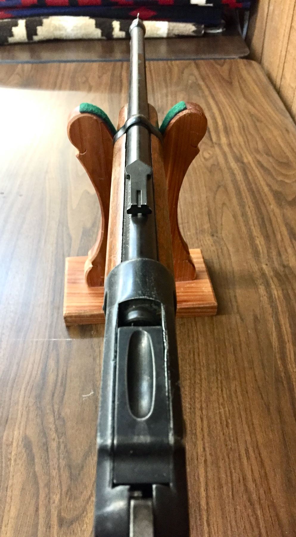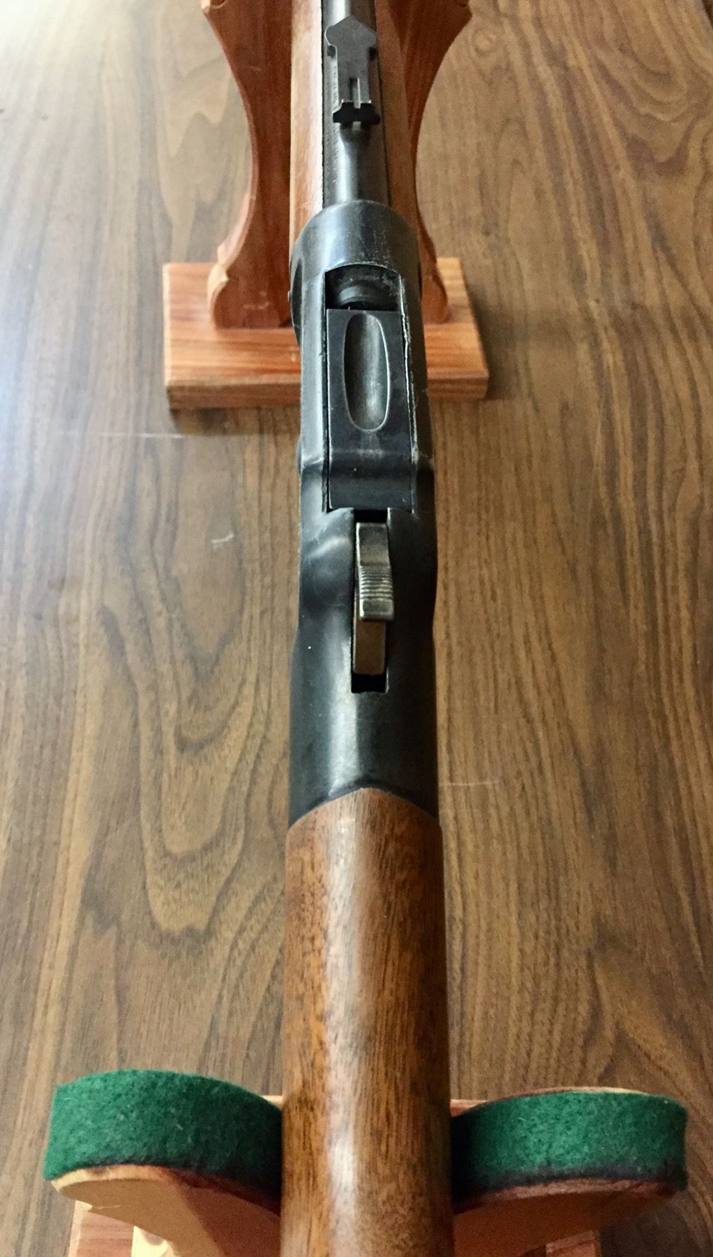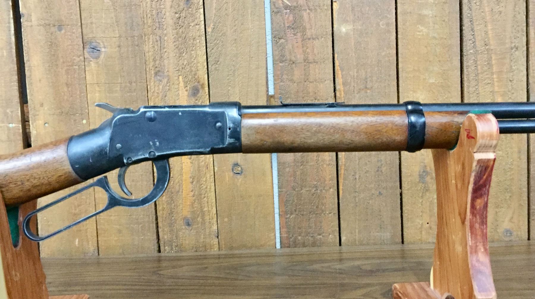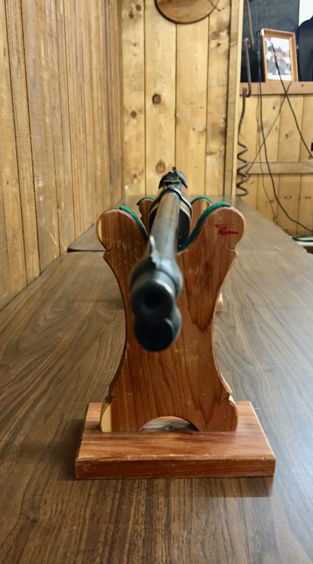 Description: Presented for sale in this lot is a nice little single shot, lever action .22 caliber rifle with a leather scabbard. It is a model 49 which was produced from 1961 - 1979. Maker: Ithaca Gun Co. Approx. Age: Modern. Serial No. 159483. Size: 18†barrel with an overall length of 35†long. Condition: Pretty good for its age, some wear expected. Please look closely at the pictures - they are an important part of our description. Shipping: There will be a $15 handling / packaging fee for shipping this lot. The actual cost of postage will be added on top of that. *****This firearm REQUIRES an FFL Transfer*****