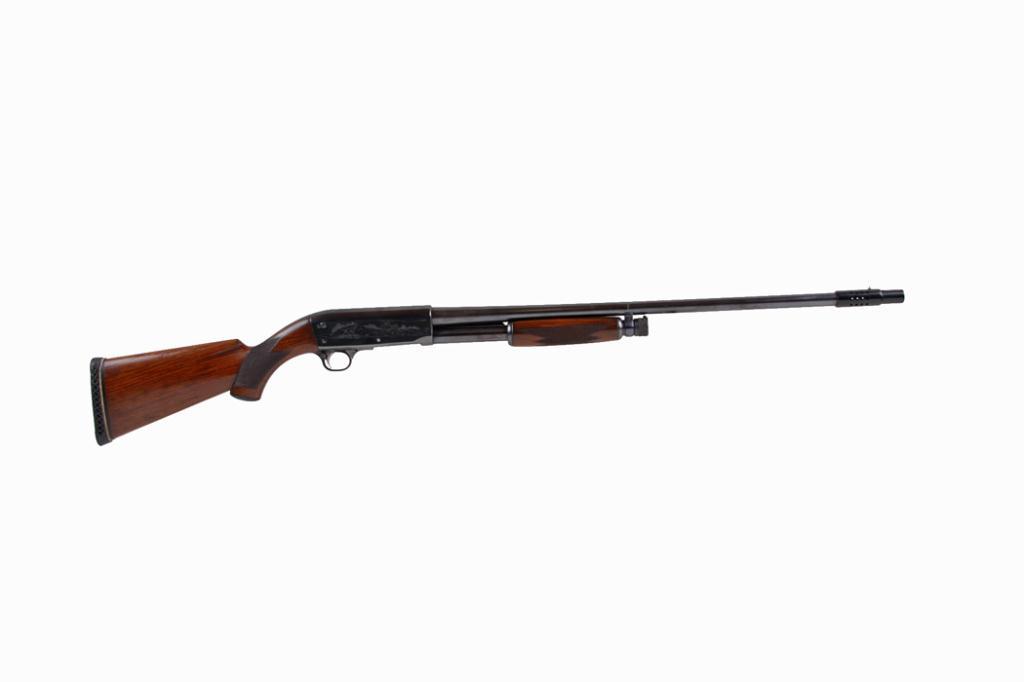 Condition: VNice old pump action 20 gauge shotgun. Blued finish, checkered walnut pistol grip stock and checkered pump handle with deteriorating rubber butt pad, 24" barrel with Weaver adjustable choke, good bore and action.Condition: Very good with slight scratches here and there and finish thinning at the breach end of the barrel from use. Butt pad needs replaced.