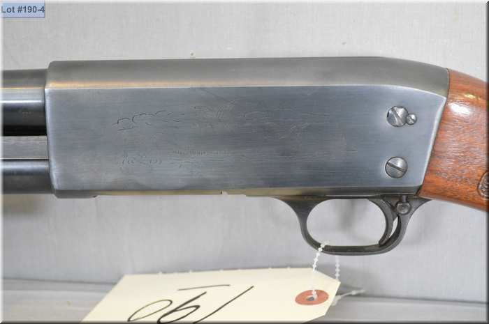 Ithaca Mod 37 Feather Light .12 Ga 2 3/4" pump Shotgun w/ 30" bbl [ appears v-good, blued finish, lightly engraved receiver , pressed checkered fluer de les pattern pistol grip stock & forend, Ithaca gun butt plate ] Ser # 371547100